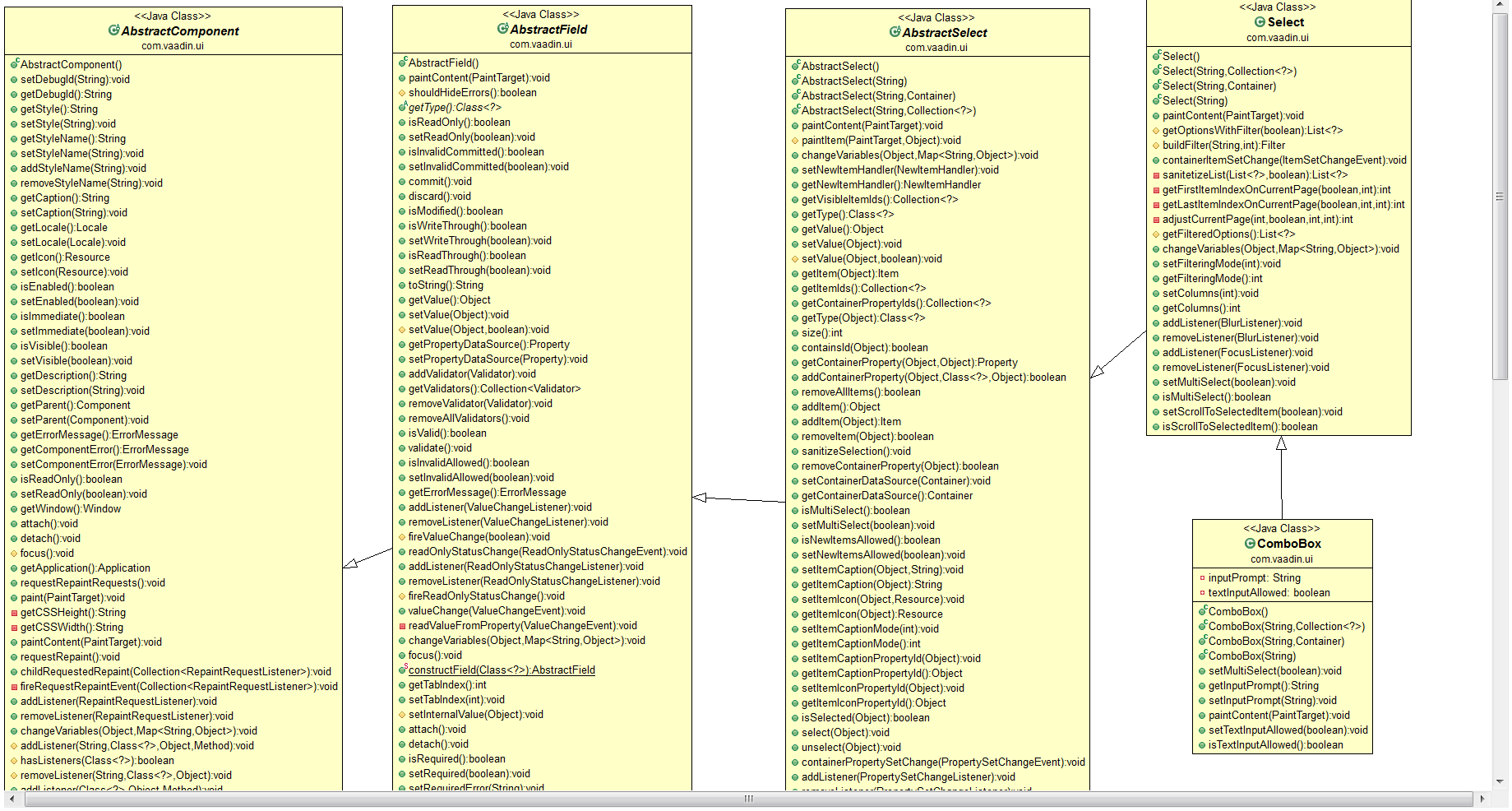 The image below illustrates the controversial architecture. I counted a few hundred of methods accessible in one component – ComboBox – inheriting from four other classes.